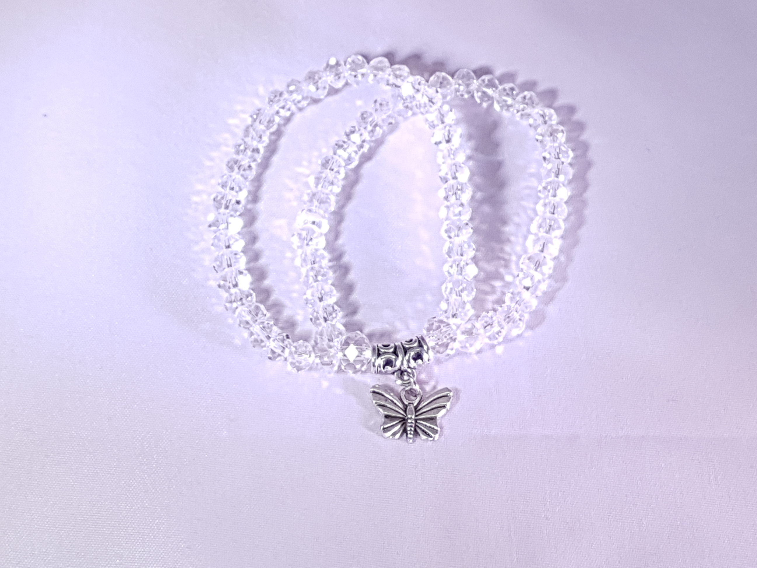 / Átlátaszó csehgyöngy karkötő pillangóval