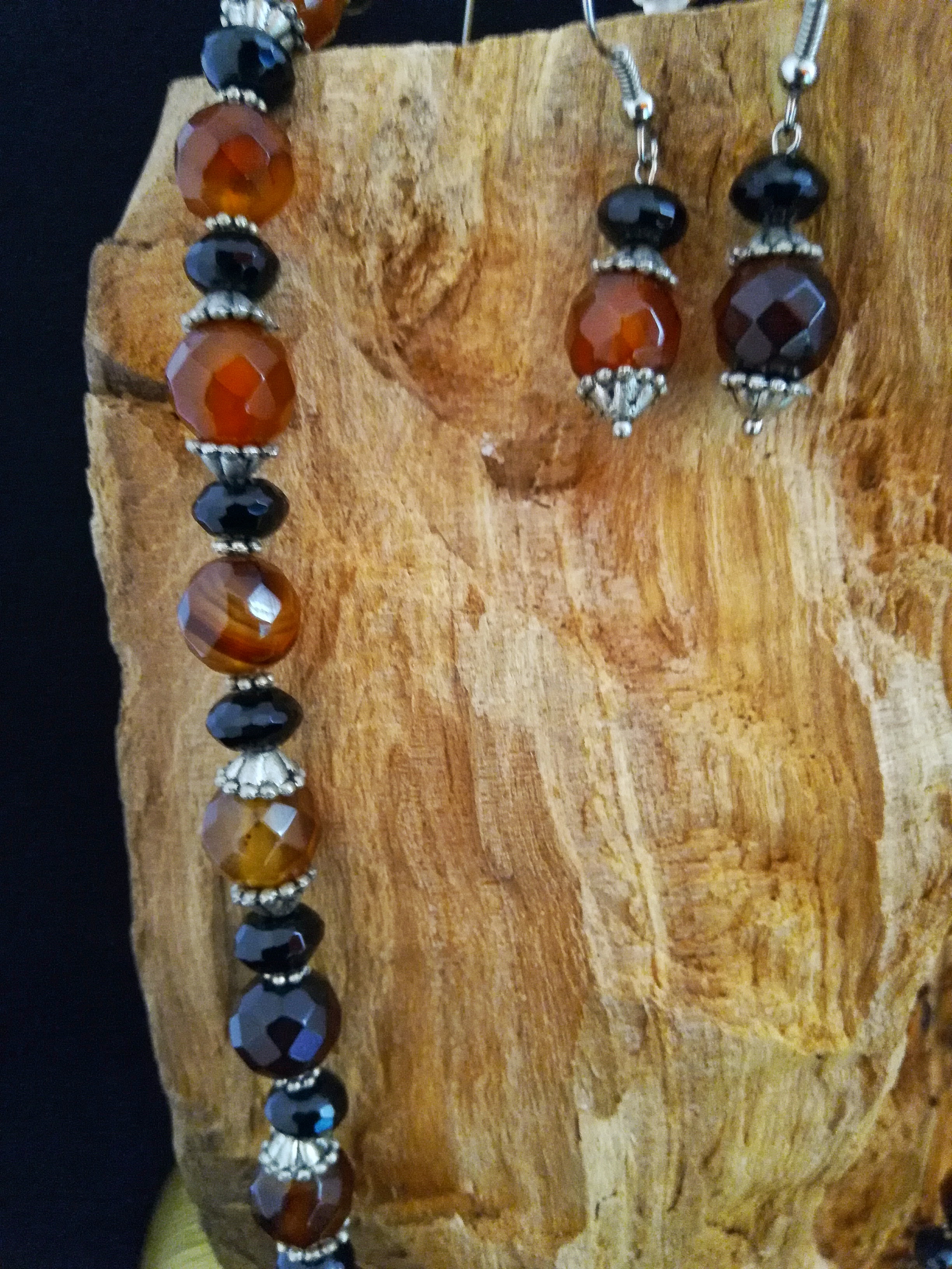 Fazettált achát és ónix lánc és fülbevaló mennyiség