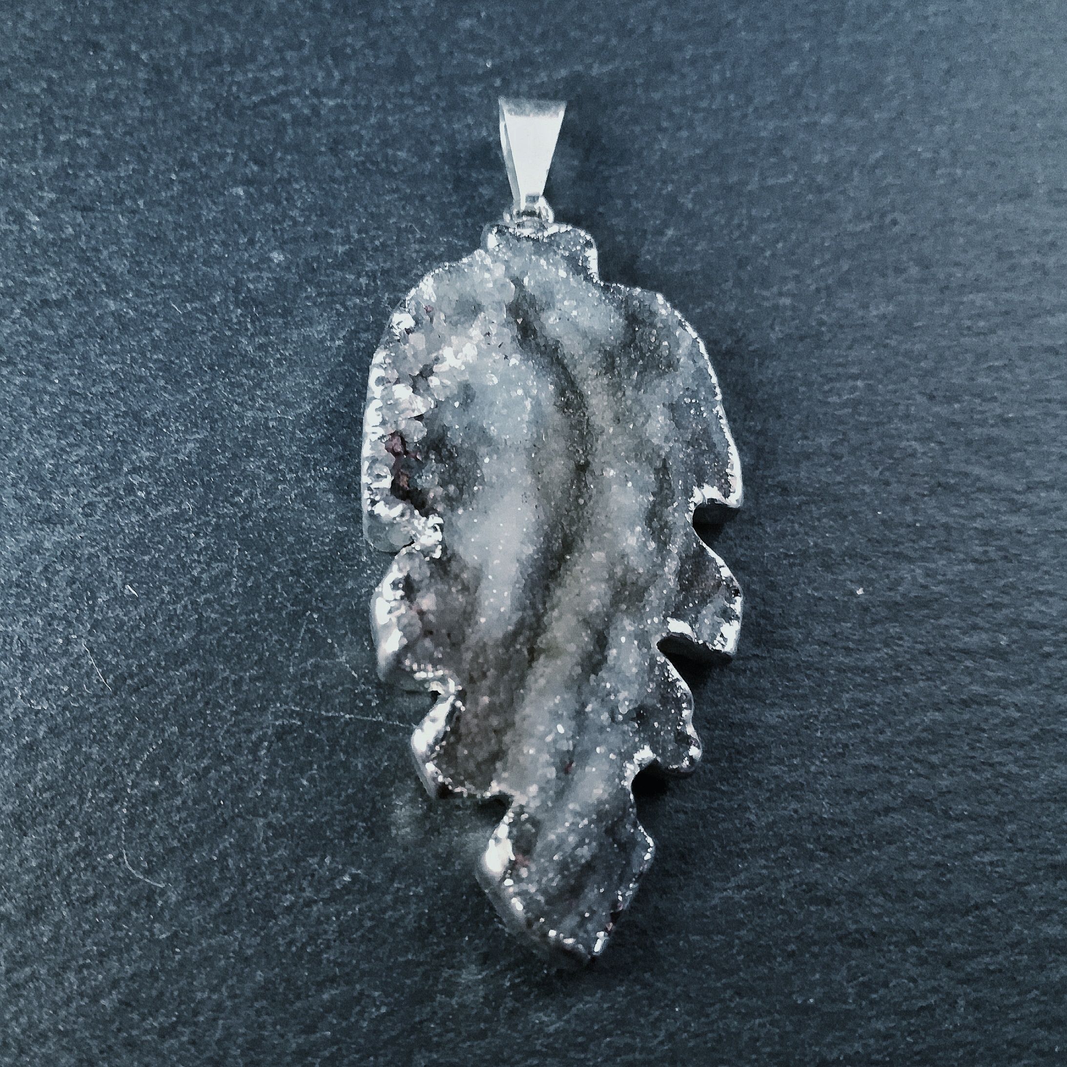 Kalcedon medál ezüst színű fémötvözettel futtatva.