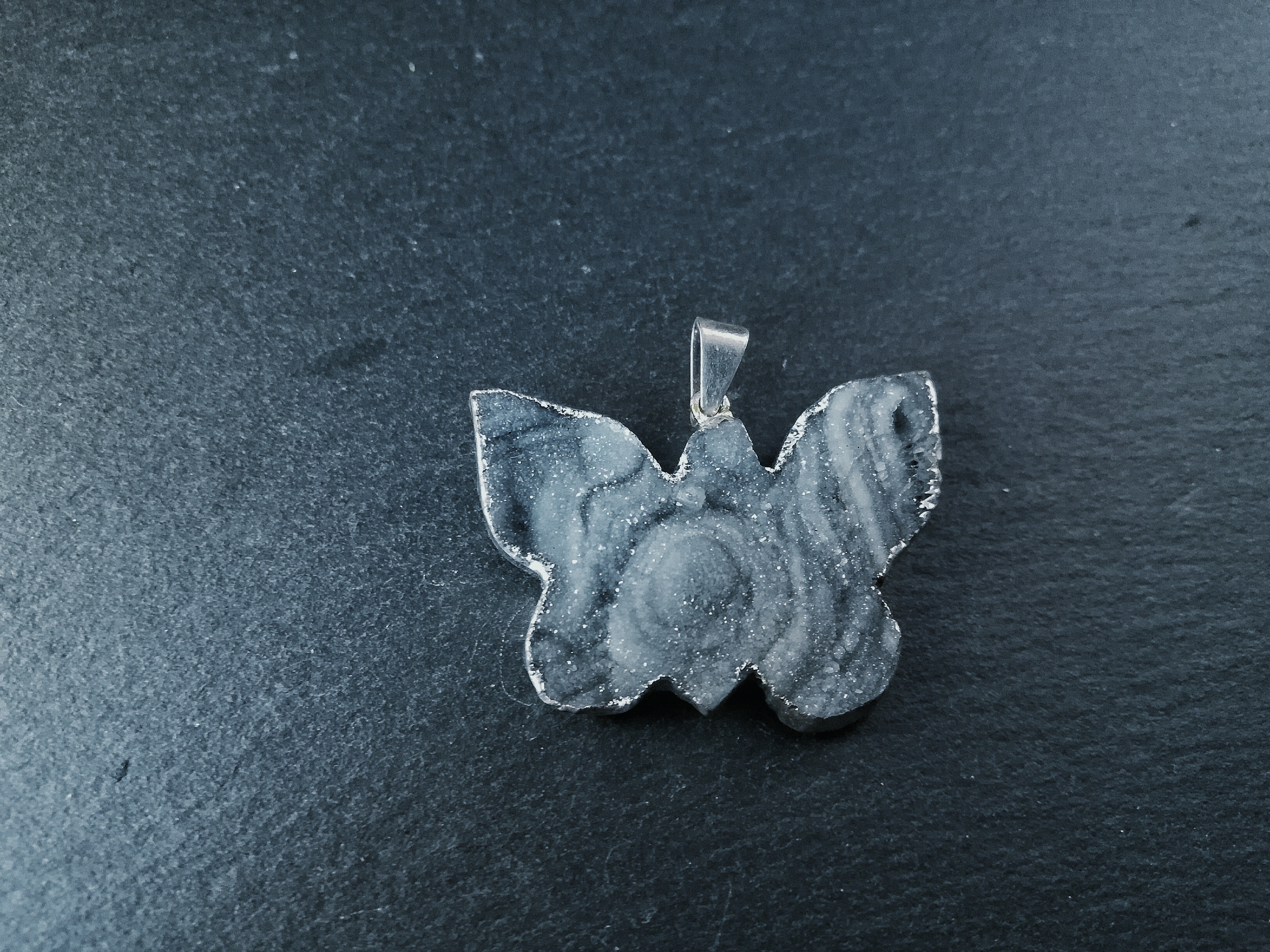 Kalcedon medál ezüst színű fémötvözettel futtatva.