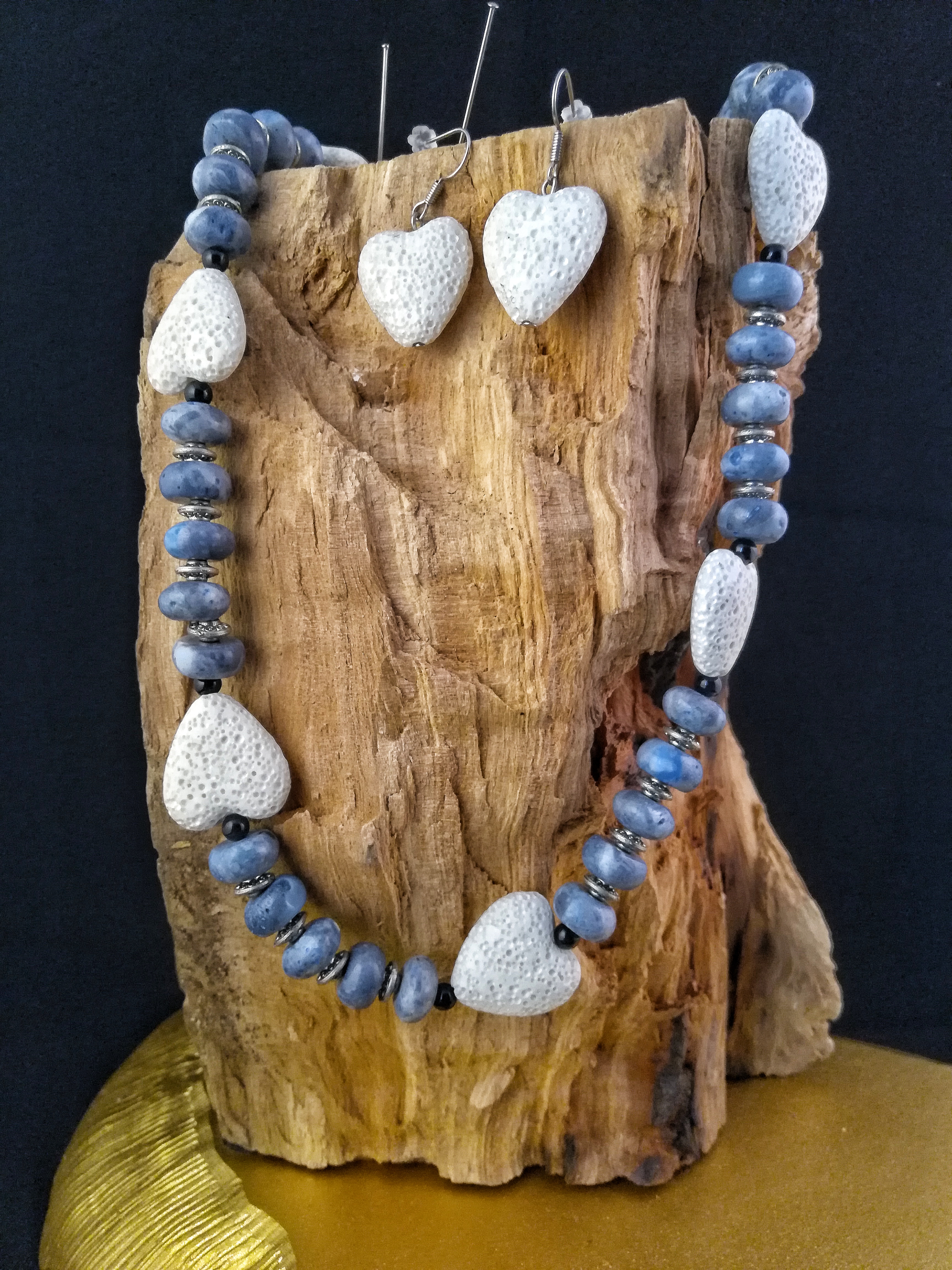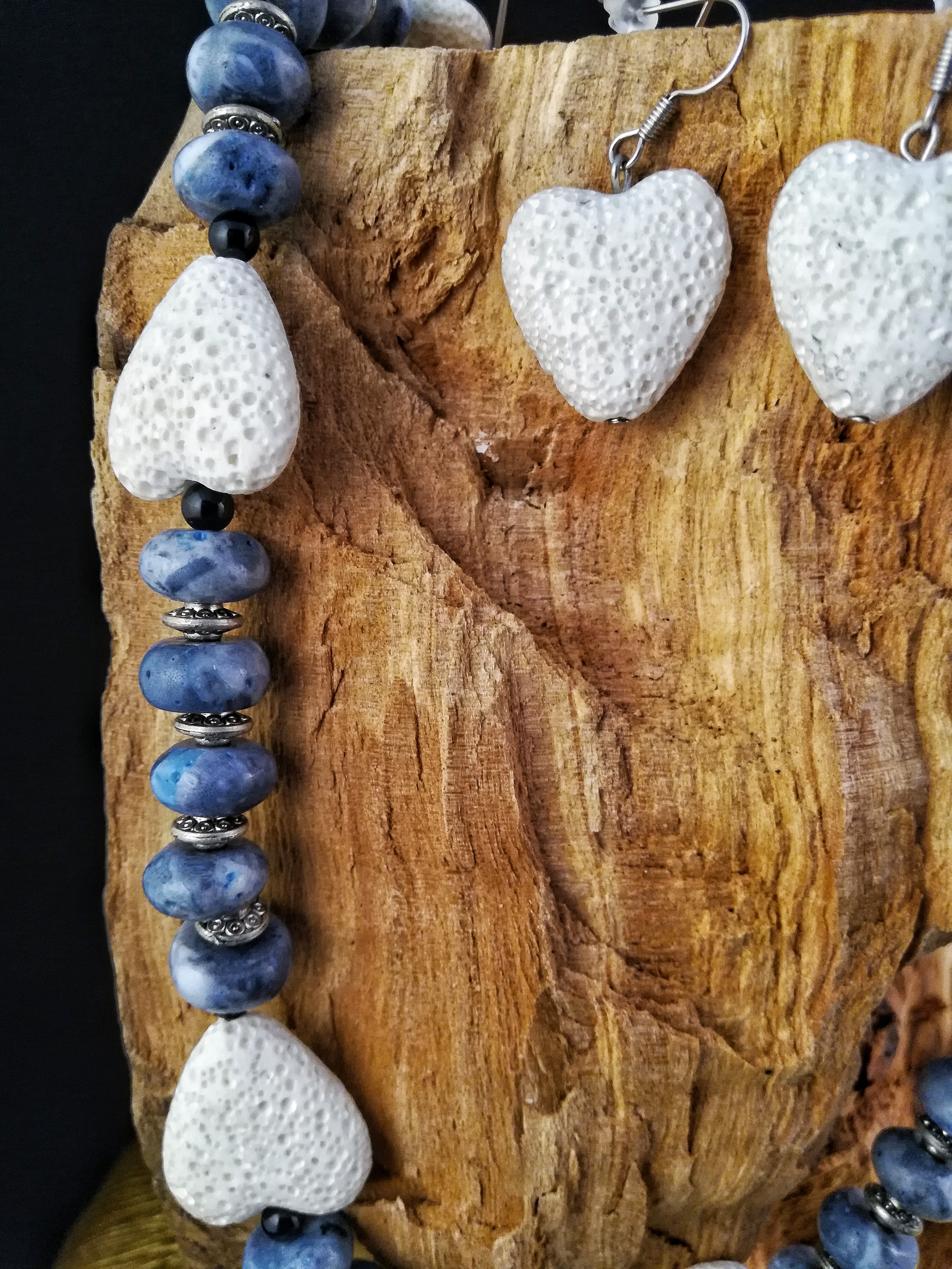Kék korall és habkő lánc és fülbevaló mennyiség