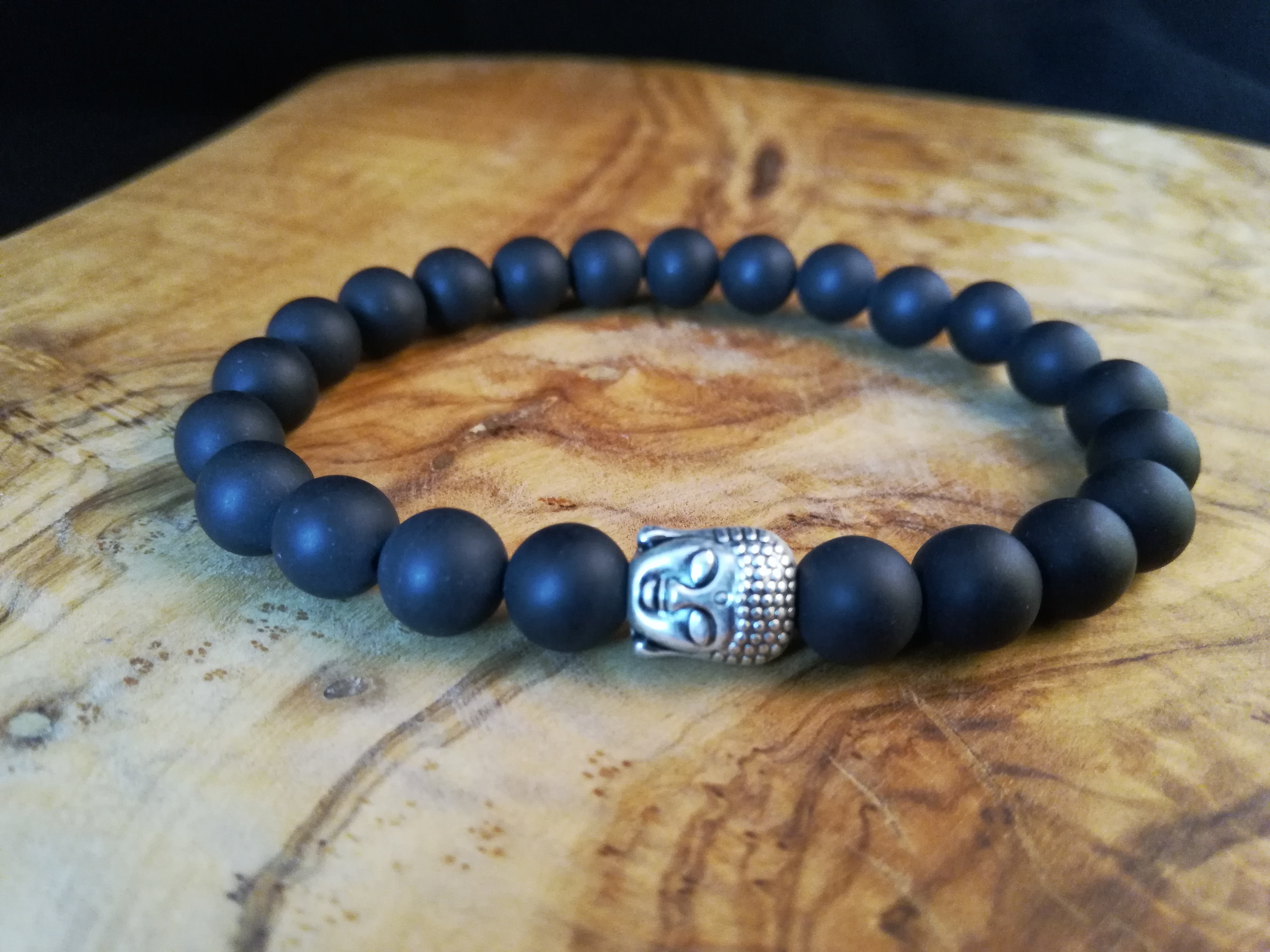 Matt bazalt karkötő ezüst színű Buddha fejjel mennyiség