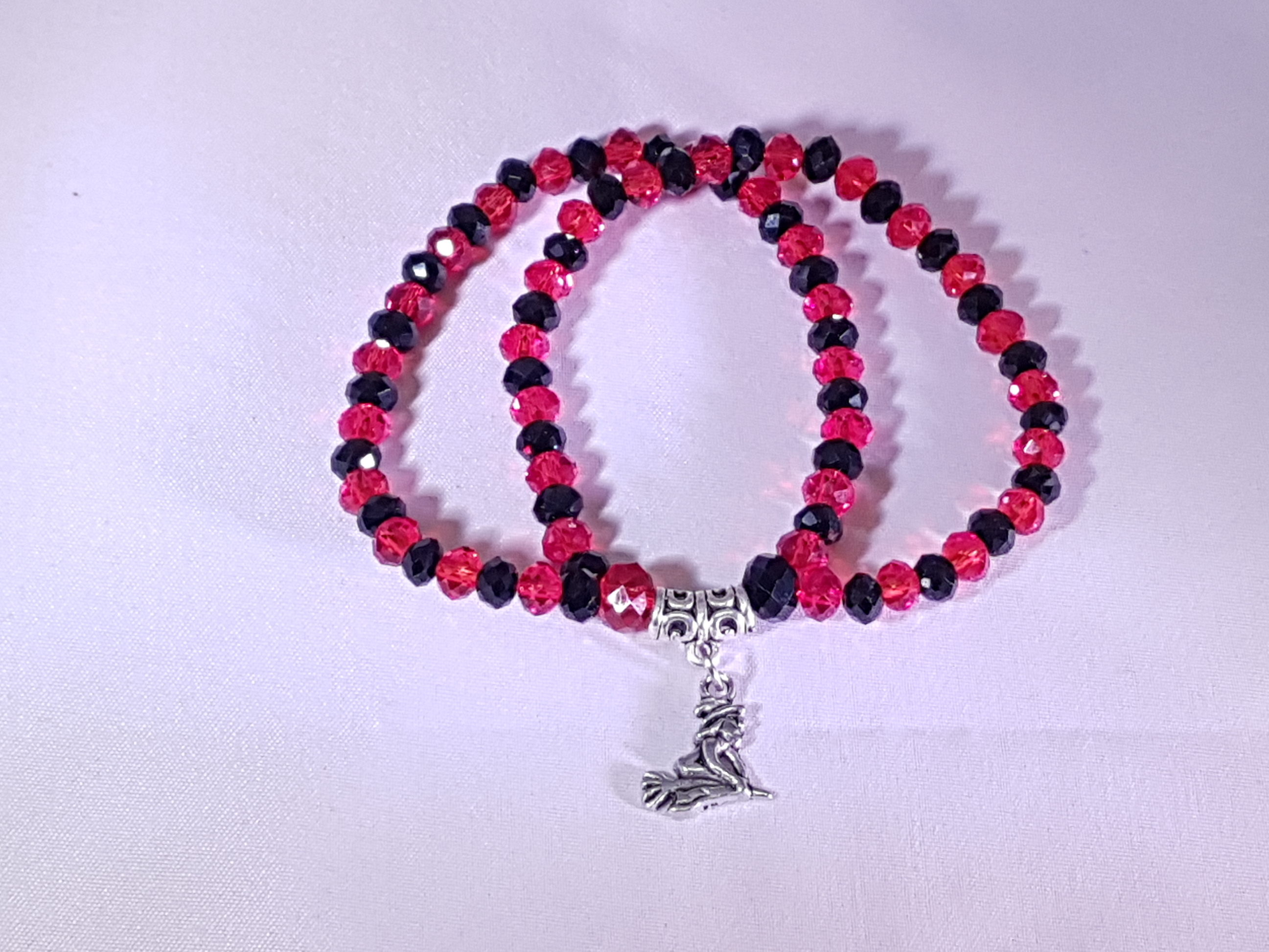 / Piros-fekete csehgyöngy karkötő boszorkánnyal