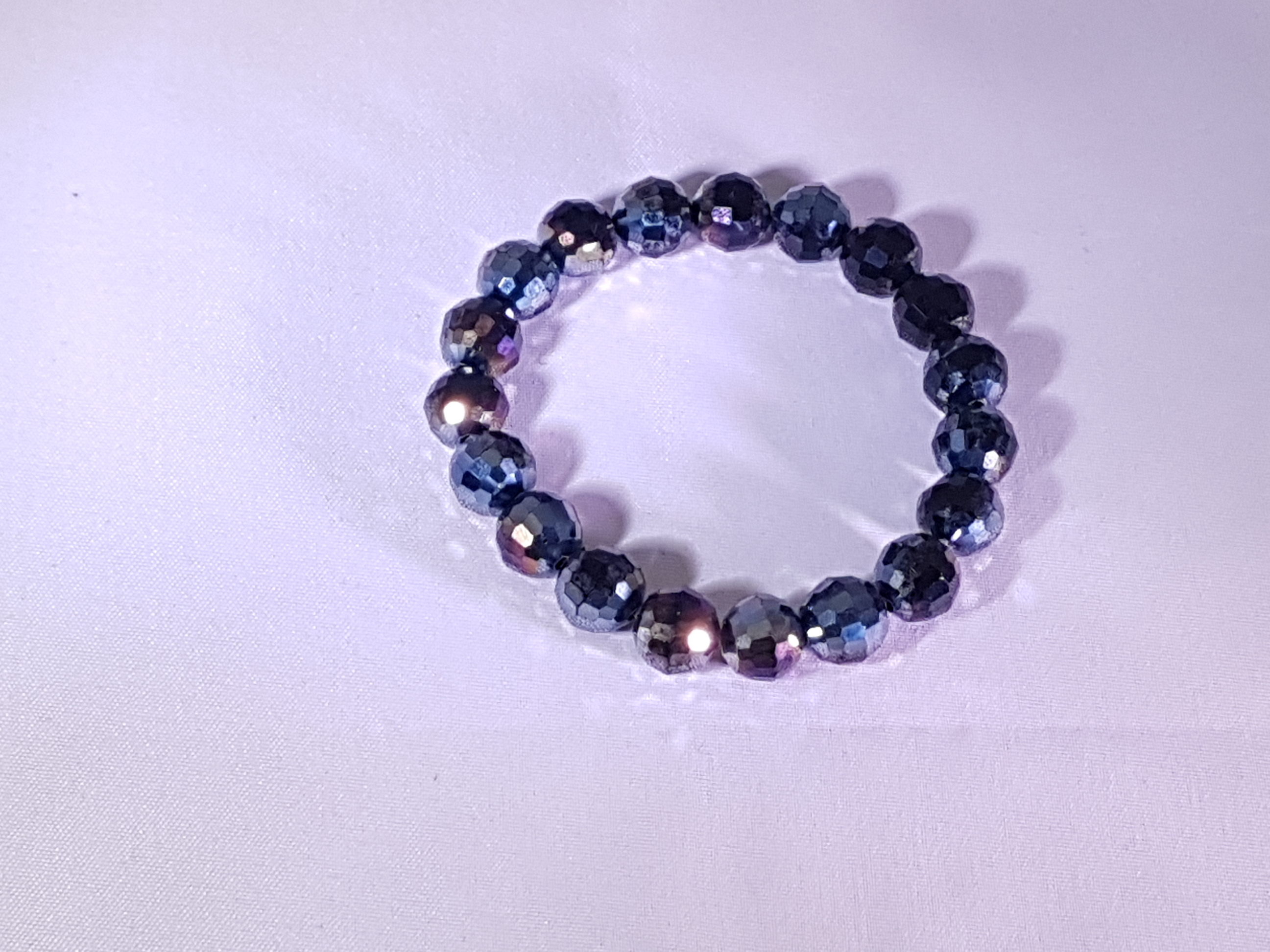 Három virágos kékes csillogású fekete csehgyöngy karkötő
